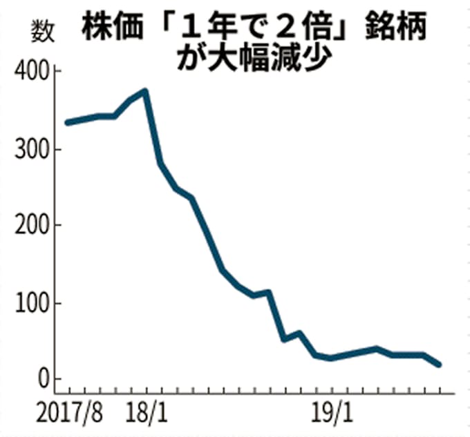 至難の業 お宝株 探し 1年で株価2倍 10年ぶり少なさ 日本経済新聞